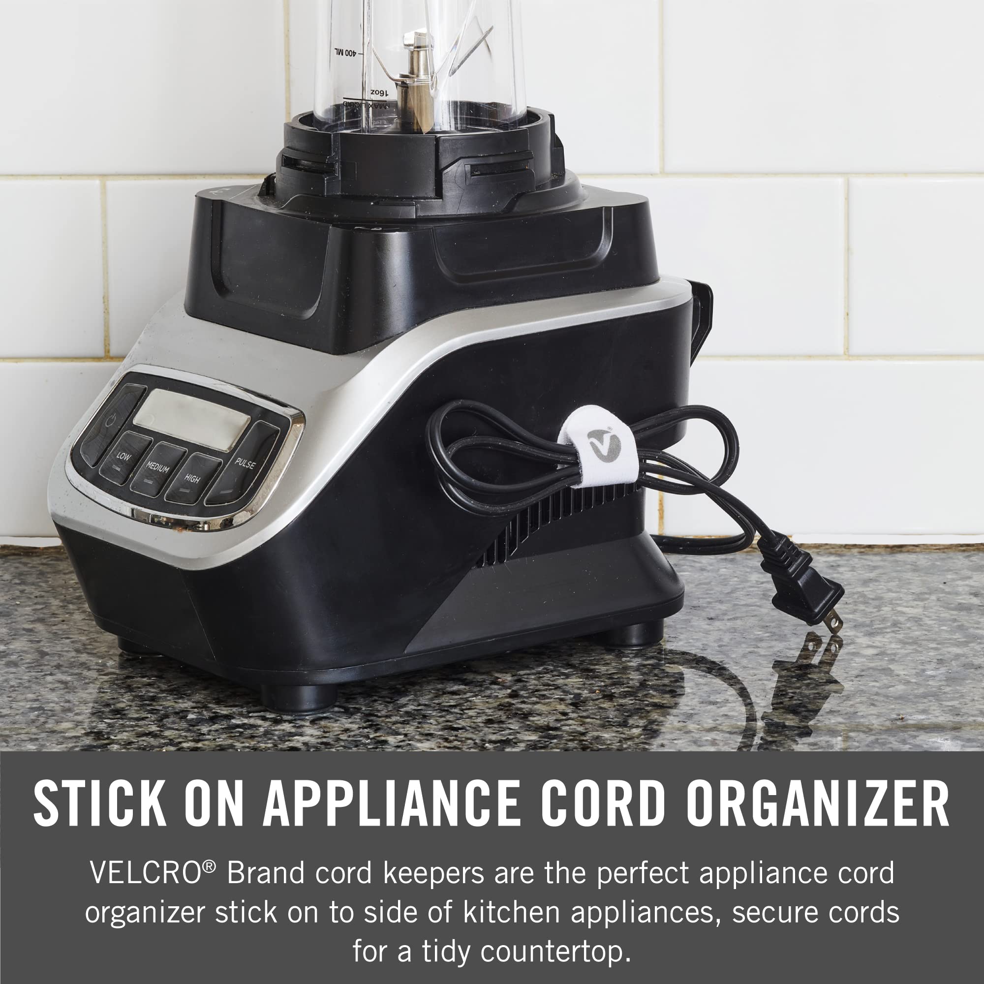 - STICK ON APPLIANCE CORD ORGANIZER: VELCRO Brand cord keepers are the perfect appliance cord organizer stick on to side of kitchen appliances, secure cords for a tidy countertop