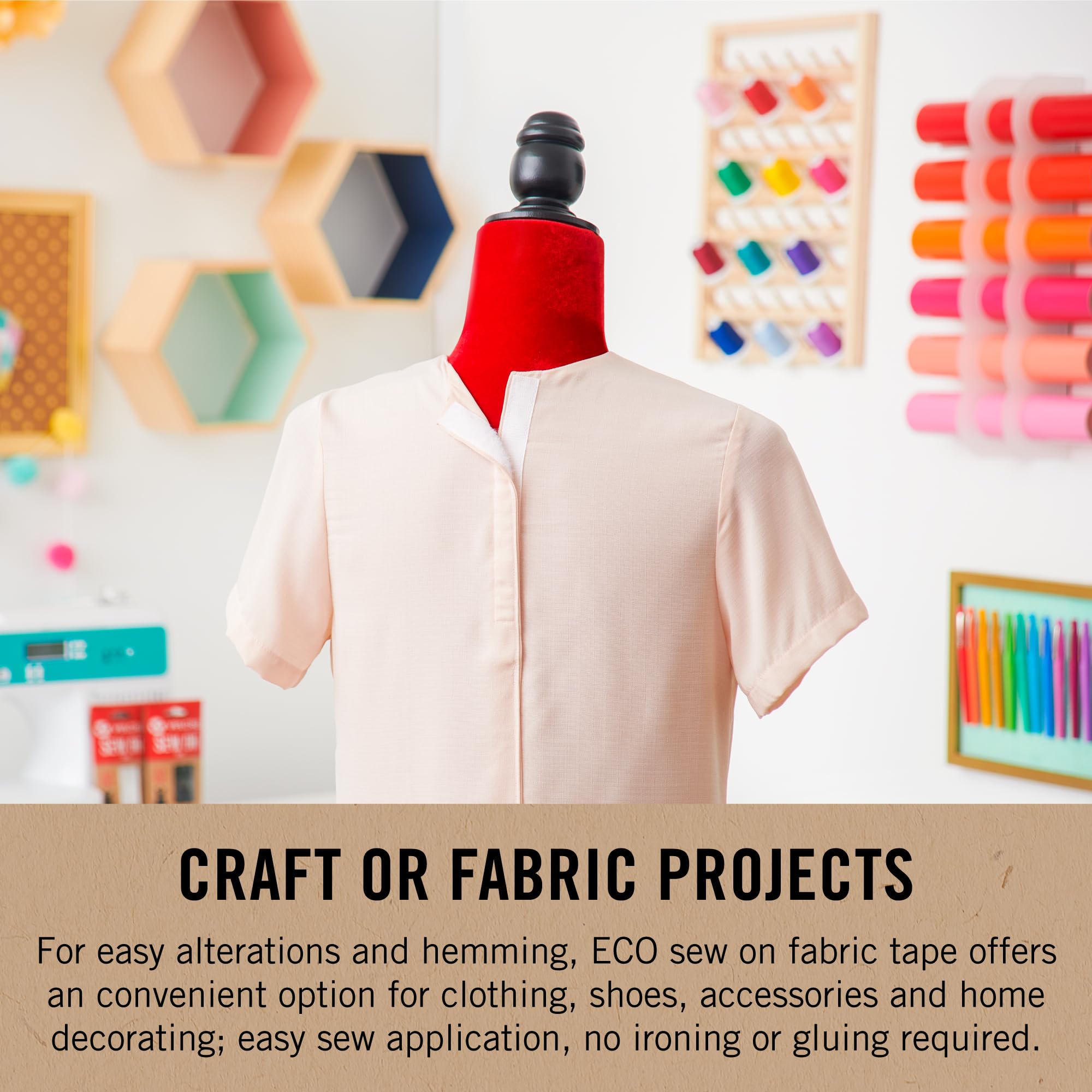 - CRAFT OR FABRIC DESIGN PROJECTS: For easy fabric alterations and hemming, this sew on fabric tape offers an convenient option for clothing, shoes, accessories and home decorating; easy sew application, strips for fabric require no ironing or gluing required