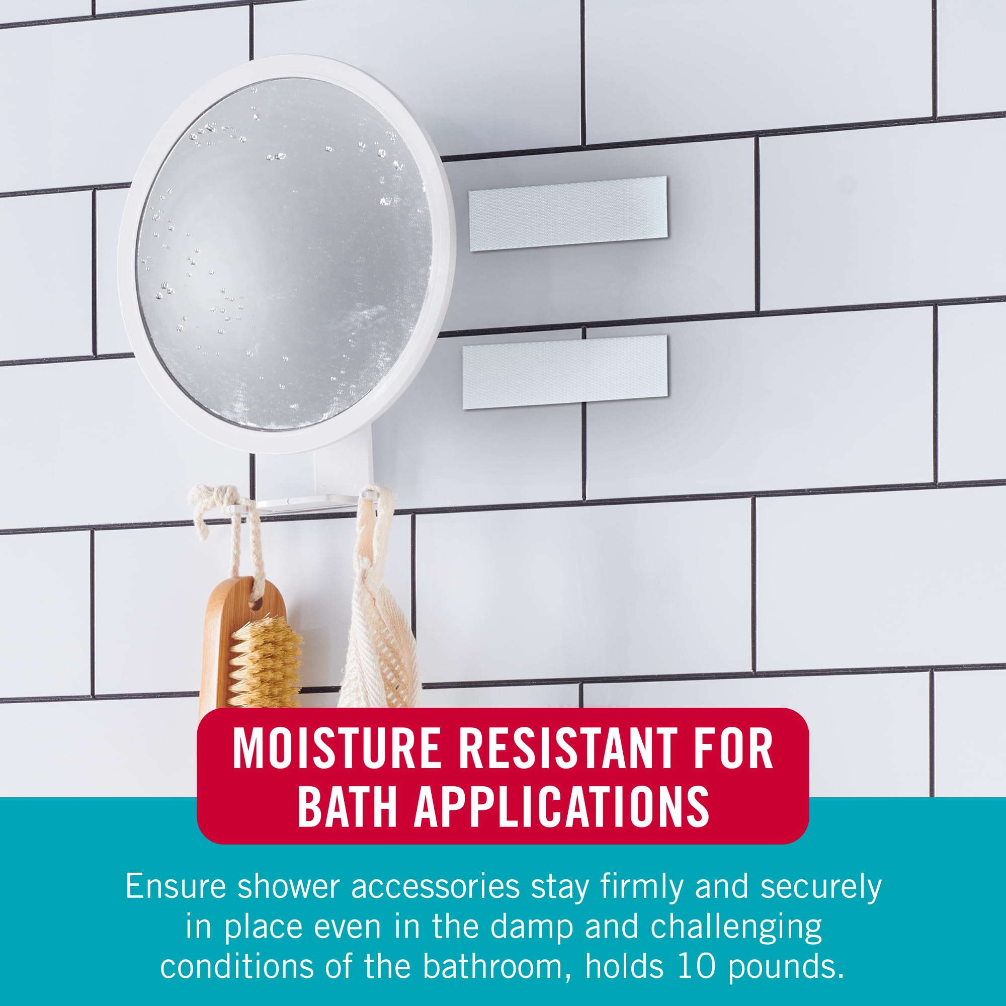 - MOISTURE RESISTANT FOR BATH APPLICATIONS: Ensure shower accessories stay firmly and securely in place even in the damp and challenging conditions of the bathroom, holds 10 pounds